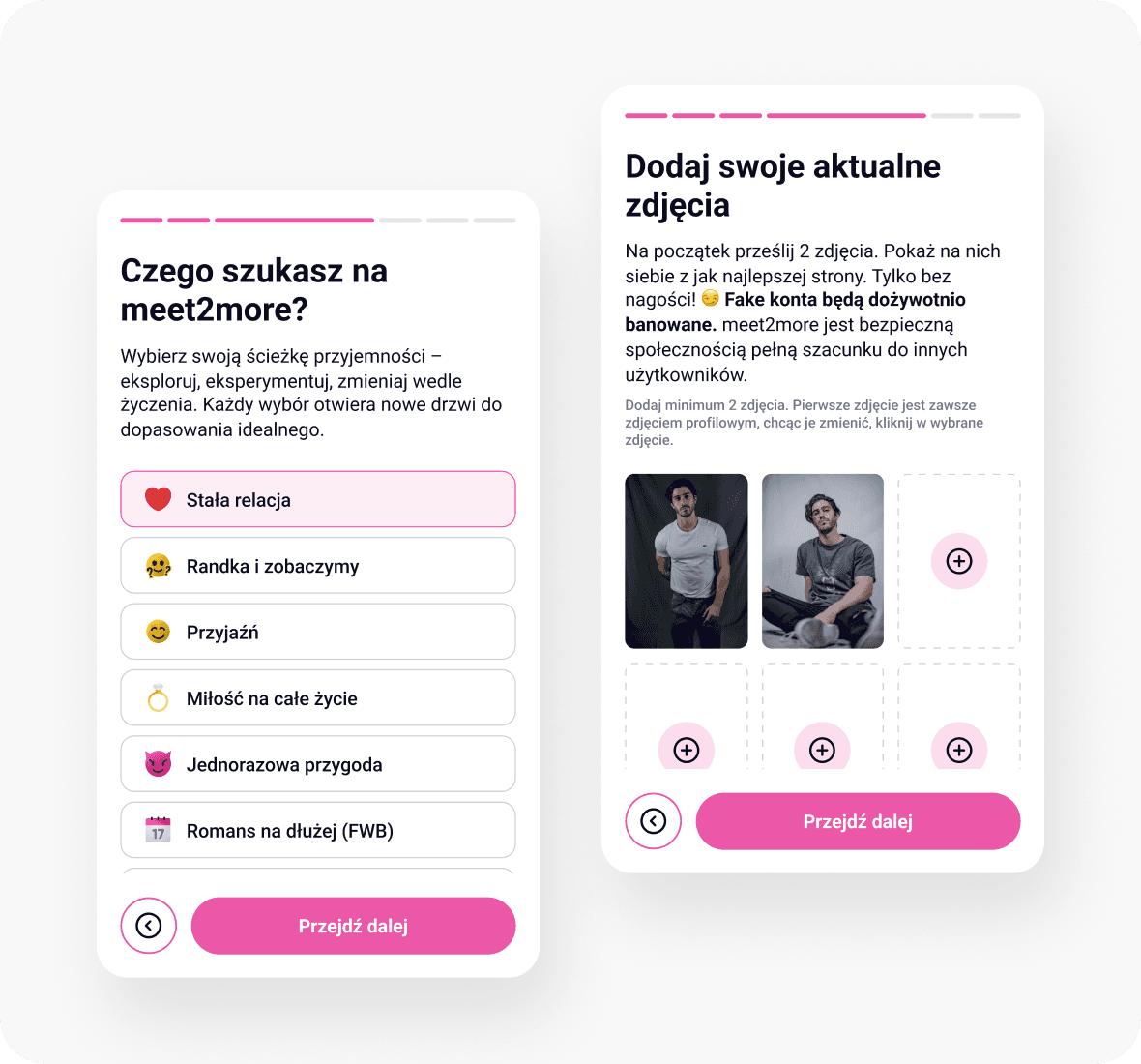 Meet2More was designed to provide a seamless and intuitive dating experience, focusing on efficiency and user-friendliness. The goal was to create an app that allows users to find compatible matches quickly without unnecessary distractions. The challenge was to ensure a smooth onboarding experience, an intuitive interface, and a fast, engaging matching process.