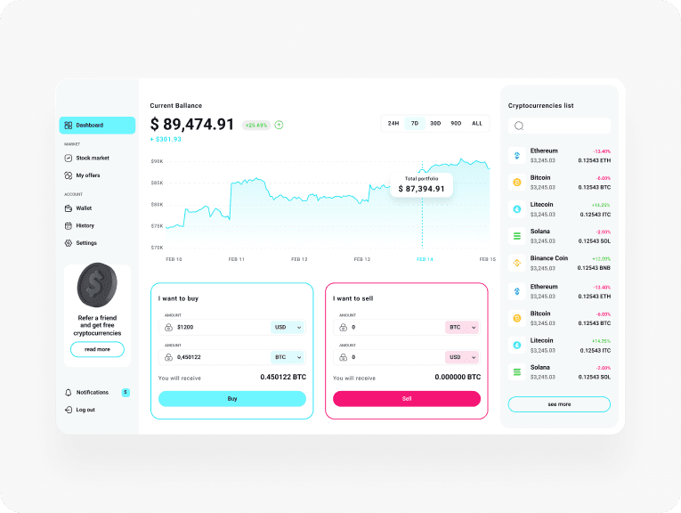 This project involved designing a secure and user-friendly interface for a cryptocurrency exchange platform. Due to NDA restrictions, specific details cannot be disclosed, but the focus was on creating an intuitive trading experience, optimizing user flows, and ensuring a modern, visually appealing design that enhances usability and trust.